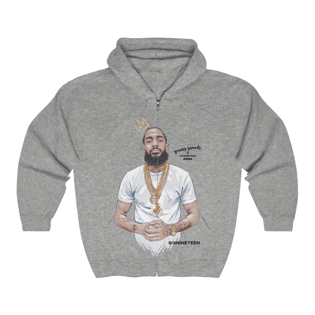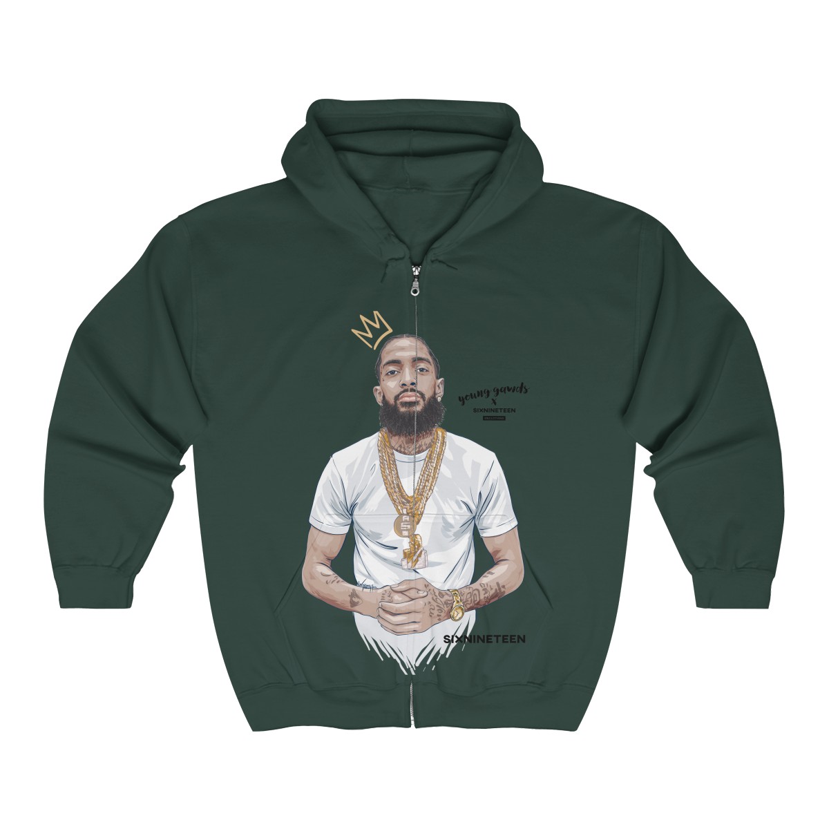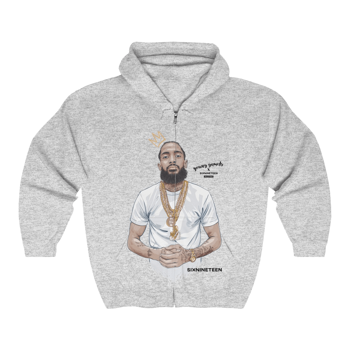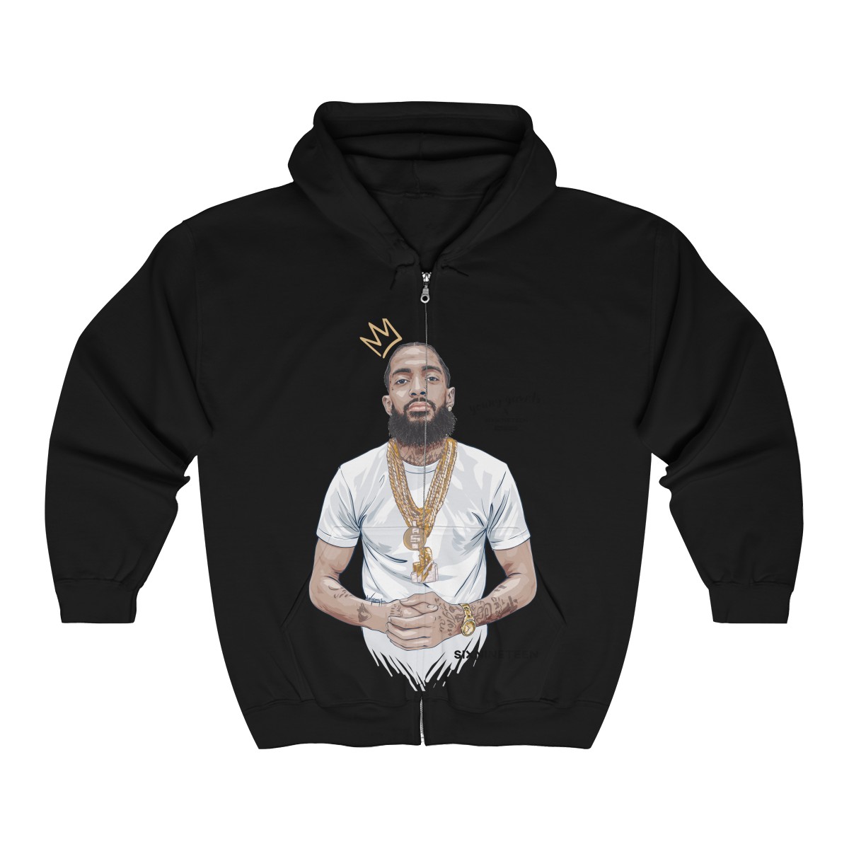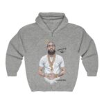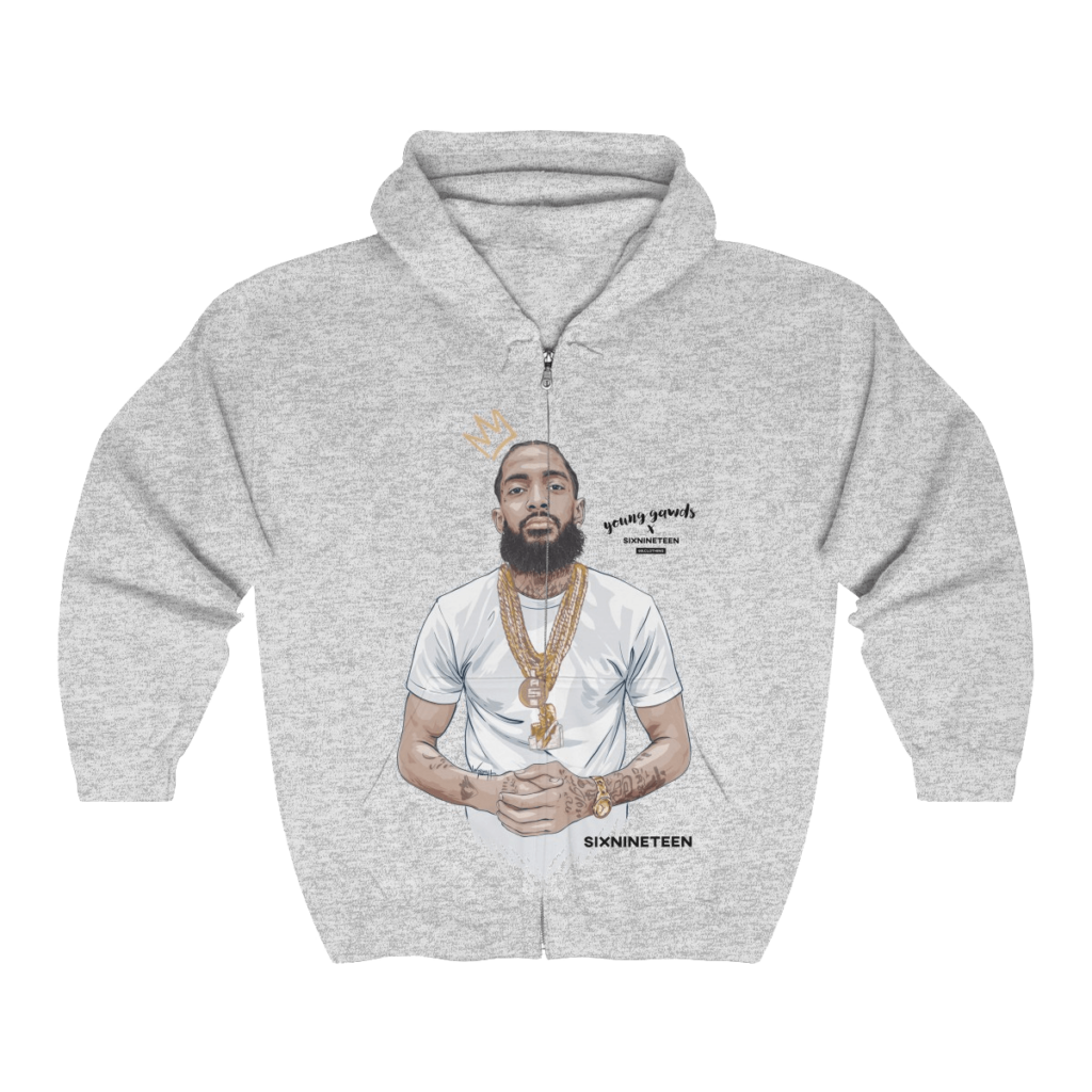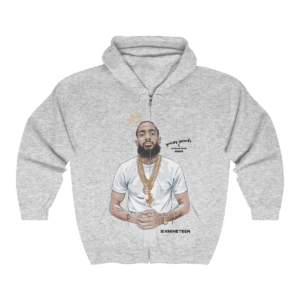 Designed exclusively for the immediate family of the late Ermias Joseph Asghedom, aka, Nipsey Hussle, we pay homage to a legend gone far too soon. A stunning, hand-made illustration of Nip is perfectly infused into the softest air-jet spun knit fleece zippered hoodie. You’ll never want to take it off, and that’s ok.