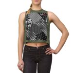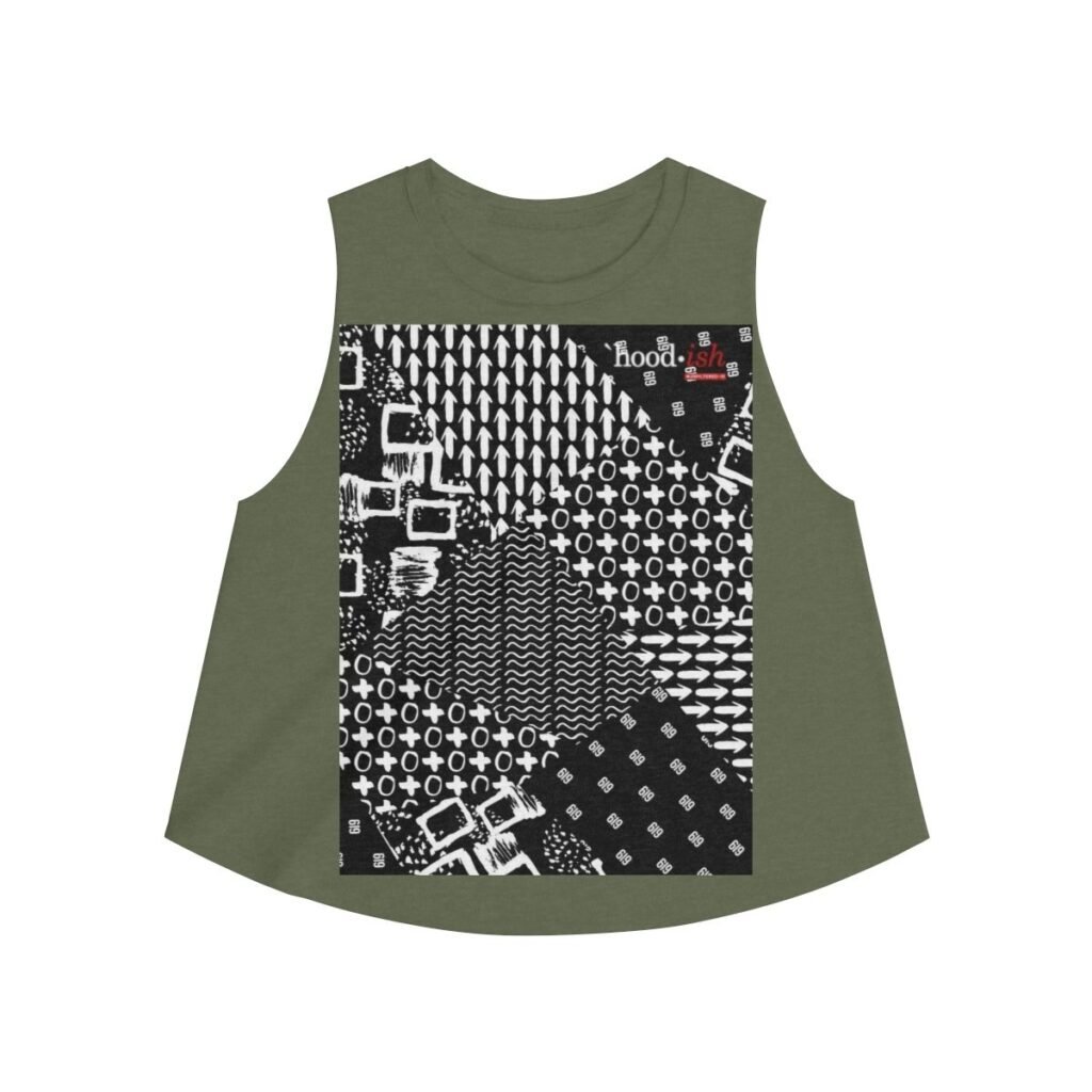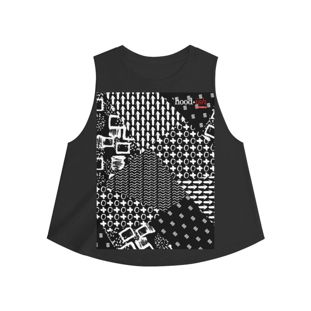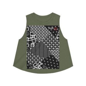 Diversify your wardrobe with a lightweight, versatile, ultra femme crop top featuring our Hoodish Heritage ink mashup print, perfect for a warm night out or a hot yoga day in.