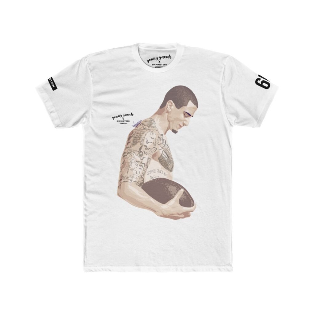 - Front features a young Colin Kaepernick illustration over a soft, premium classic t-shirt