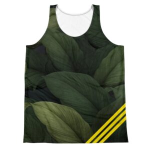 Retreat beneath the canopy of a tropical oasis in our unisex tank top, inspired by the rainforest and designed to remain vibrant, airy, and light, an ideal declaration of Summer.